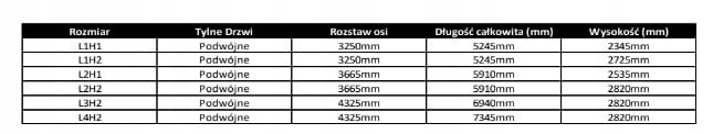 - Kompatybilna z rozmiarem auta: L2H1 / L2H2