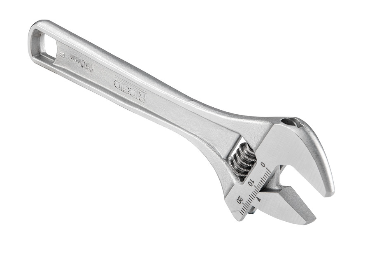 Klucze nastawne RIDGID posiadają stożkowe szczęki o szerokim rozwarciu, umożliwiające pracę w trudno dostępnych przestrzeniach. Wygrawerowane podziałki na szczękach według norm SAE i metryczne pozwalają szybko ustawić rozwarcie klucza. Wzmocnione szczęki minimalizują zużycie i zwiększają bezpieczeństwo użytkownika. Niskoprofilowy uchwyt o przekroju dwuteownika wygodnie mieści się w dłoni. Stal chromowo-wanadowa z potrójną powłoką zapewnia profesjonalej klasy wytrzymałość, minimalne zużycie i wysoką trwałość.