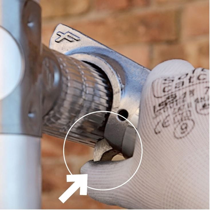 - Stężenia i barierki są łatwe do montażu i demontażu dzięki hakom zaciskowym.
