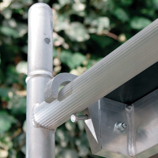 Elementy rusztowania są odporne na korozję. Po złożeniu wieża zajmuje bardzo mało miejsca, dlatego jest łatwa i wygodna w transporcie i przechowywaniu.