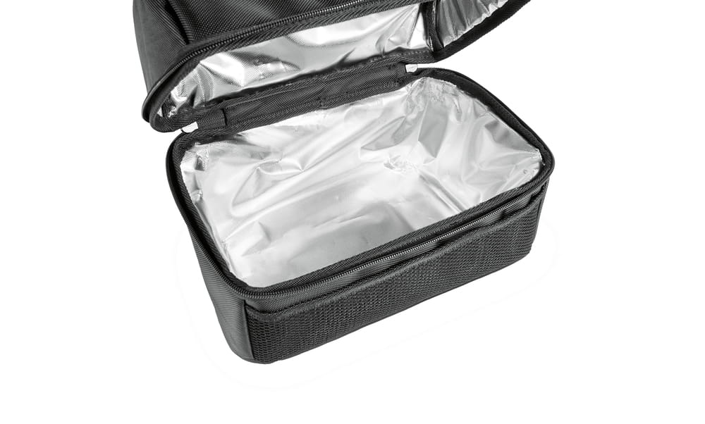 Torba na lunch jest wyściełana od wewnątrz folią izolacyjną, która jest łatwa do czyszczenia i dłużej utrzymuje ciepło lub zimno żywności. Z dwukierunkowym zamkiem błyskawicznym do szerokiego otwierania torby, jak i dodatkową ochroną przed kurzem i brudem. Z praktycznym uchwytem do jej przenoszenia.
