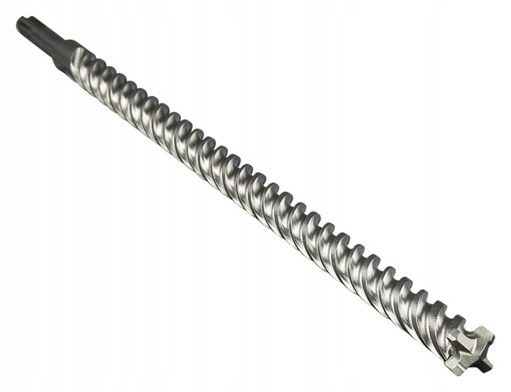 - Dzięki najnowocześniejszej technologii, wiertła posiadają duży solidny TCT z nacięciami w kształcie szczelinowym. Głowica węglowa z masywną główną krawędzią tnącą oraz symetrią cięcia 4x90° zapobiega zaczepianiu w przypadku uderzeń w zbrojenie. Jego geometria została opracowana pod kątem maksymalnej siły udarowej i skręcania, jak również wydłużonego okresu eksploatacji przez użytkownika.